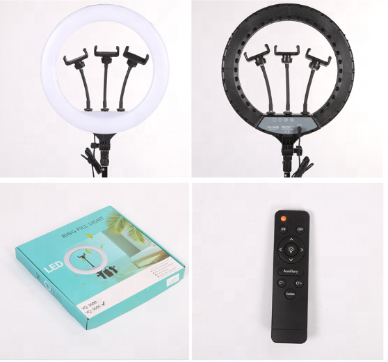 If you are looking for a small, lightweight ring light with good lighting for your makeup table, the YQ-420A ring light is an ideal option. This 40 cm diameter ring light does not require batteries and can be used with a power adapter, suitable for makeup, self-grooming, and home use. You can place this model on a stand and use it. This model has a built-in remote control so that you can adjust the settings of this ring light remotely. Another feature of this product is the ability to increase and decrease the light intensity. You can increase the light intensity of the ring light in environments where less light shines on the subject
